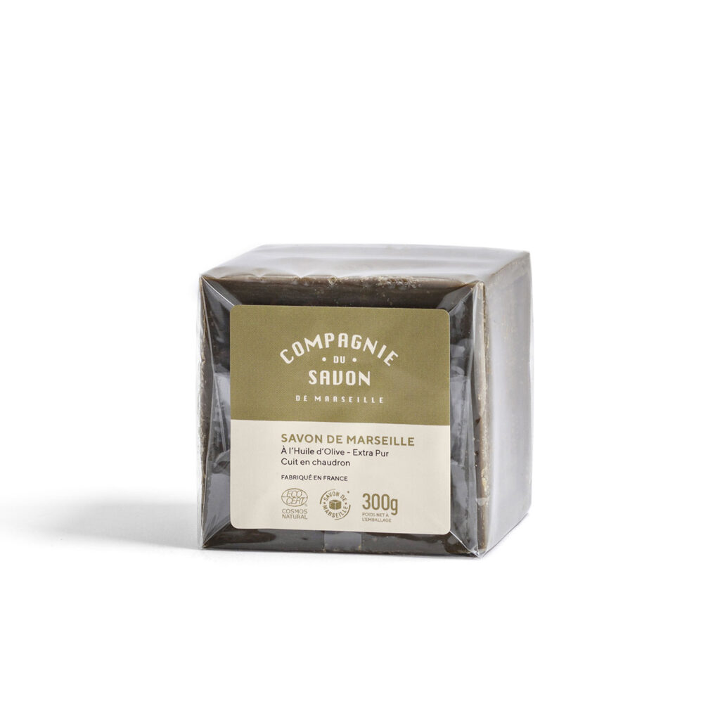 L’iconique Cube de Savon de Marseille à l’Huile d’Olive cuit en chaudron est l’indispensable pour l’entretien de la maison et la toilette.