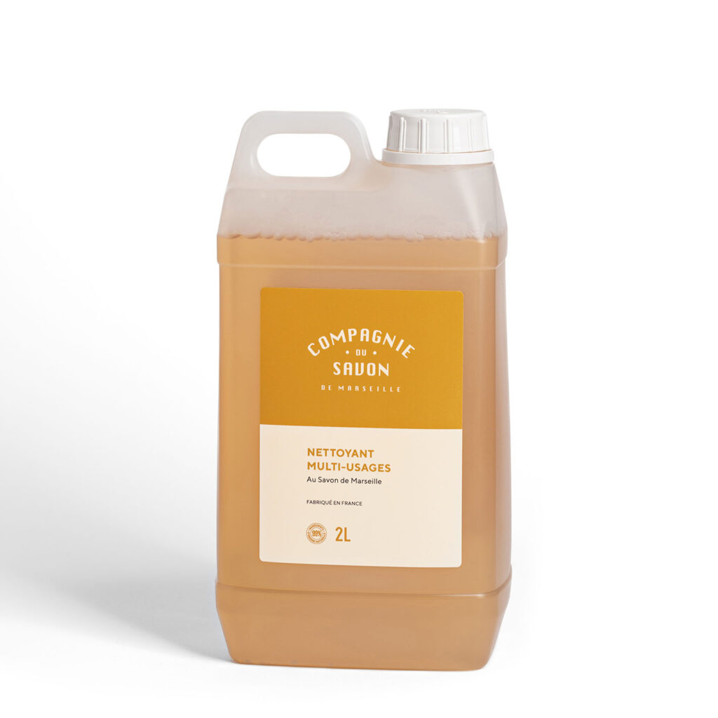 Formulé à base de Savon de Marseille fabriqué en chaudron, le Nettoyant Multi-Usages dégraisse et élimine en profondeur les saletés de toutes les surfaces lavables. 99% d’origine naturelle, il fait fait briller plan de travail, cuisinière, réfrigérateur, plaques de cuisson, salle de bain grâce à sa formule concentrée et naturellement efficace.